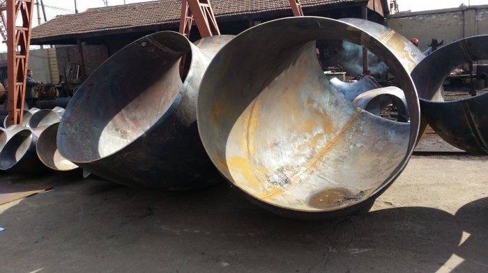 關(guān) 于大口徑薄壁 彎頭 ,我們所在進(jìn)行生產(chǎn)的時(shí)候要打支撐,那么打支撐的目的是什么呢? 所謂的打支撐我們利用的鋼管的支撐的原理,我們首先要把鋼板進(jìn)行 搞圓形,在進(jìn)行搞